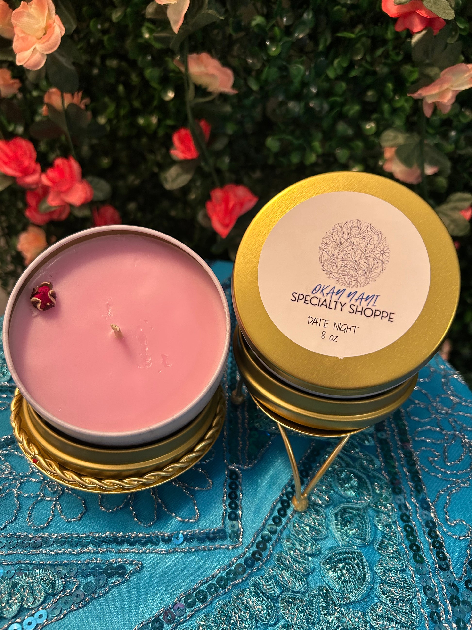 Our Date night candle is a spell romance. This candle evoke a sense of intmancy and warmth through their sof glow. Is perfect for any romatic ocassion with scents of wild roses and exotic orchids that will linger long after the night is over